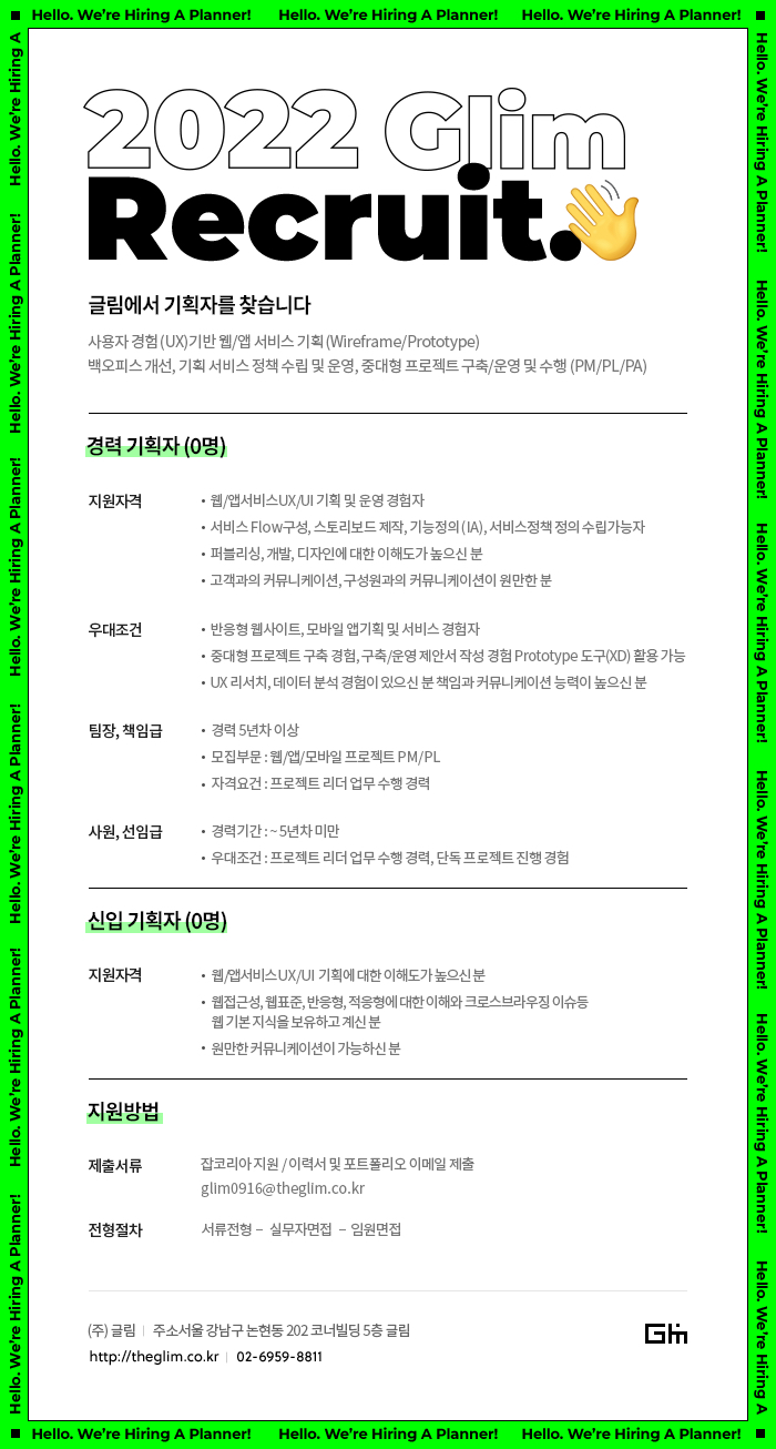 [신입/경력] 글림에서 UI/UX 기획자를 찾습니다.