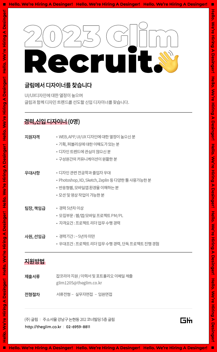 [신입/경력] 글림에서 UI/UX 디자이너를 찾습니다.